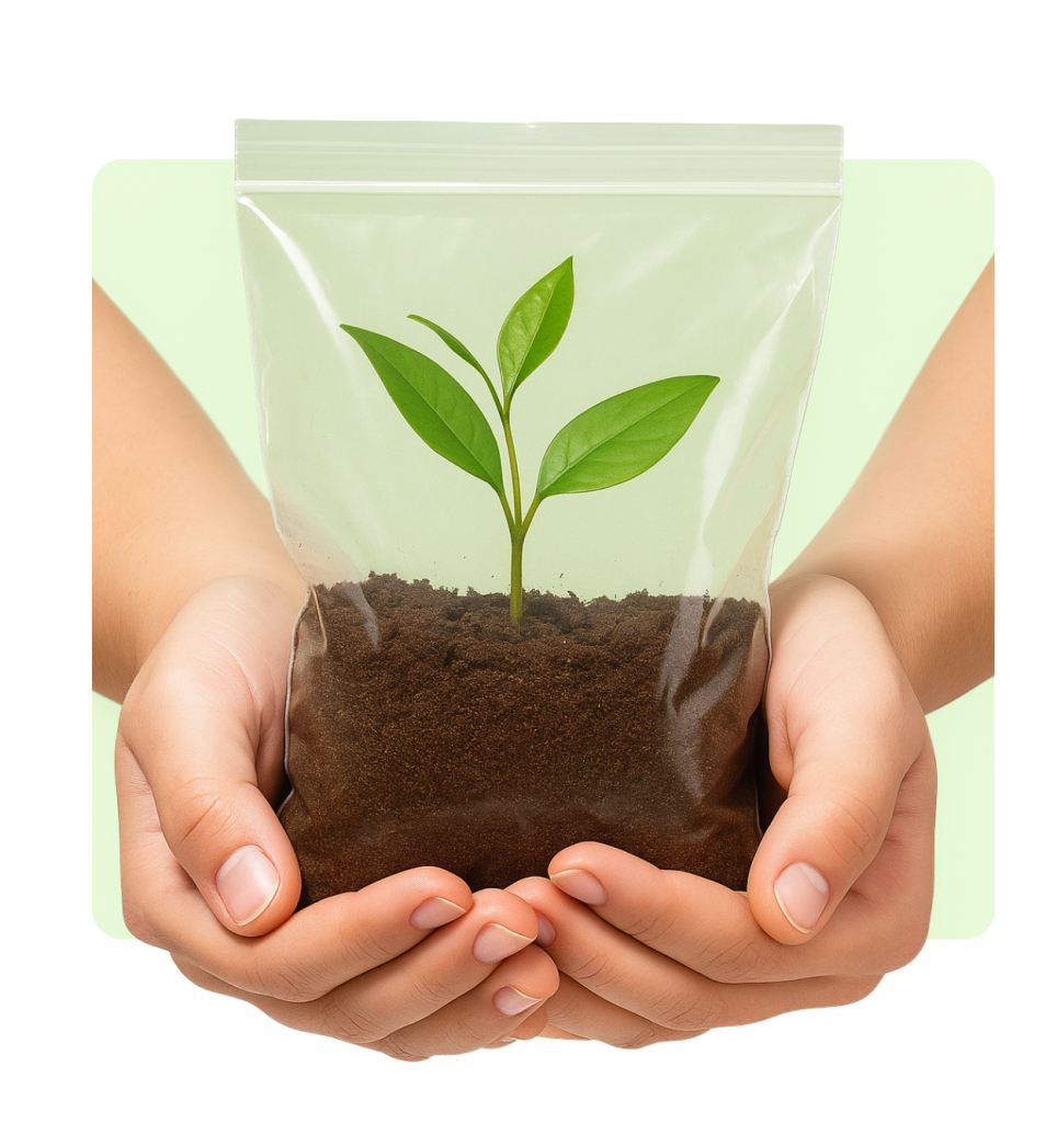 Usamos bolsas biodegradables y reciclables para cuidar tu producto y el planeta.